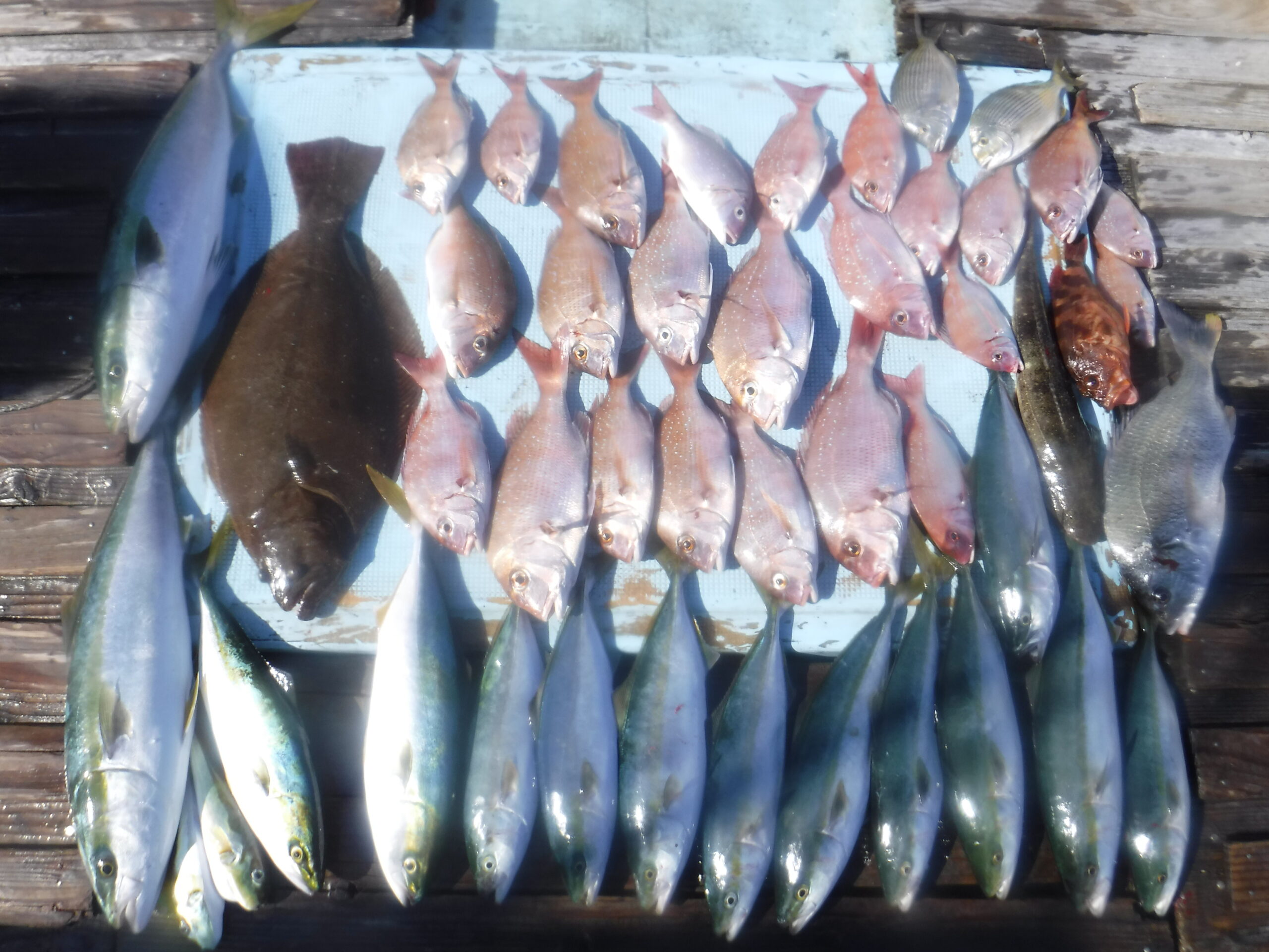 佐藤さんら良型の真鯛釣れたね~!(^^)!真鯛・ハマチ・クロダイなど色々釣って来ましたね!岐阜の小林さんらも仕立でヒラメ・ワラサ・真鯛・ハマチと釣れましたね!!!