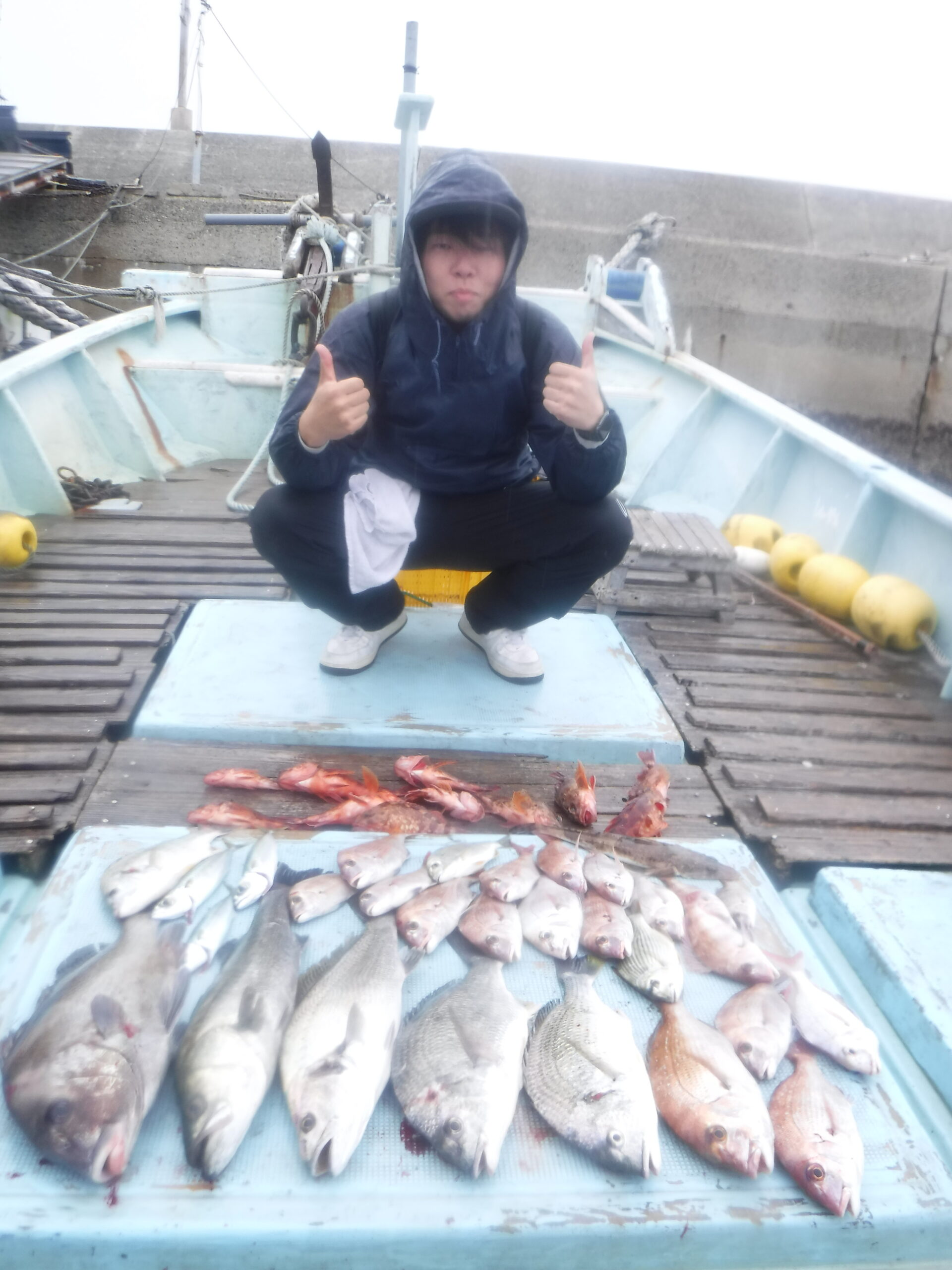 浜崎さんら仕立で良型真鯛釣れましたね~(^^♪大島さんらも仕立で真鯛・コショウダイ・マタカ・カサゴと色々釣れましたぁヽ(^o^)丿明日の真鯛狙いの乗合まだまだまだ空いてま~す。