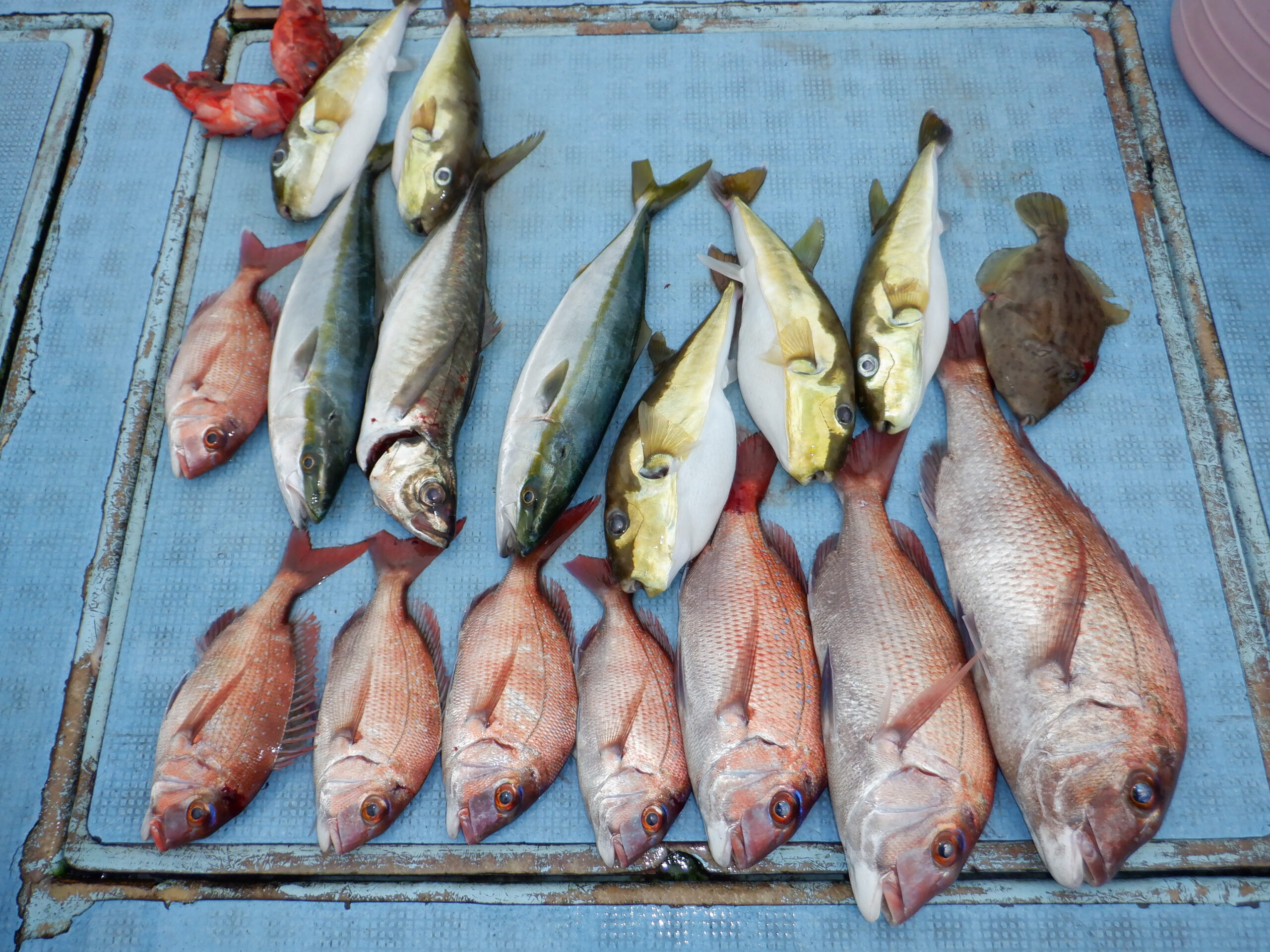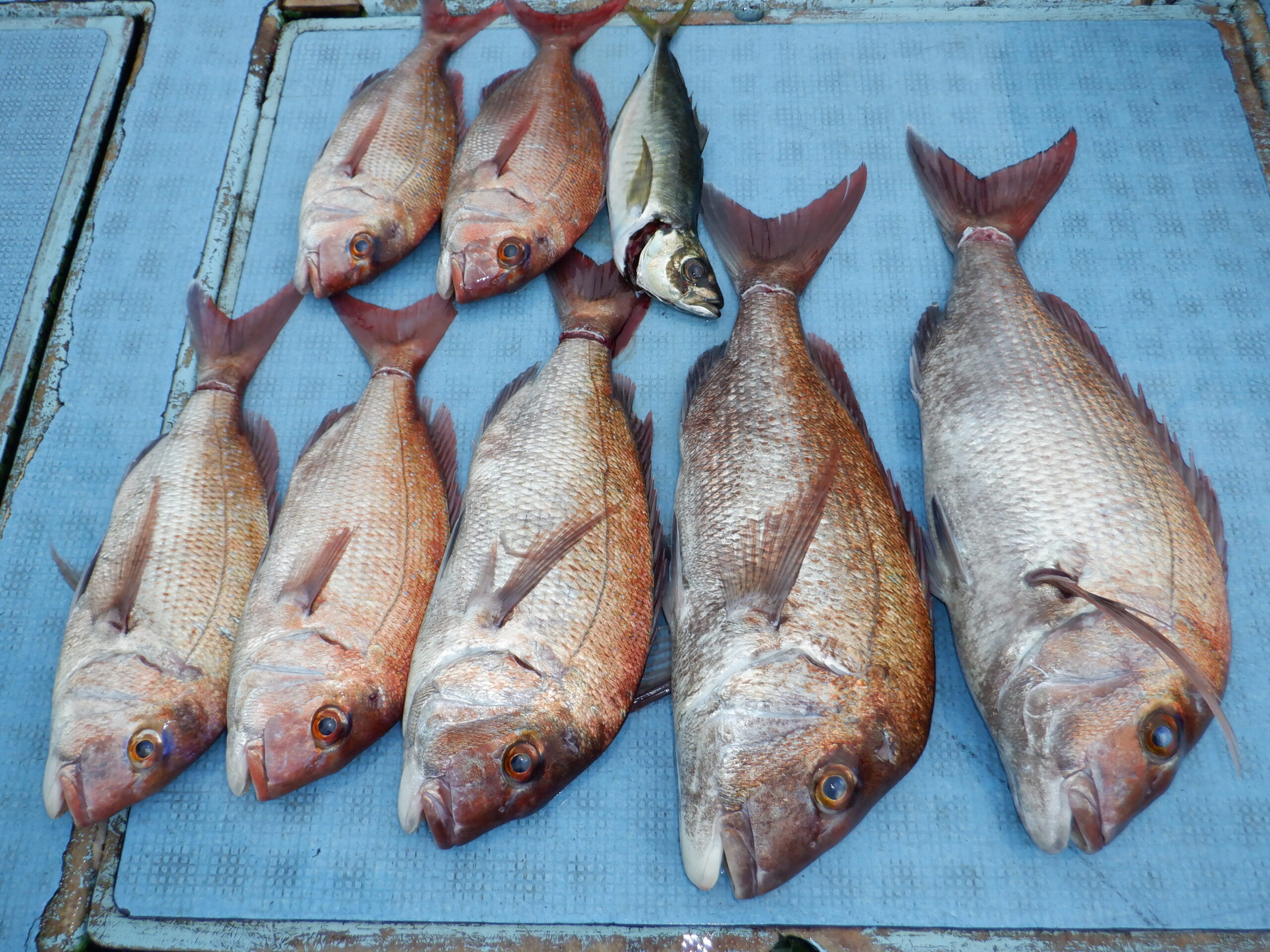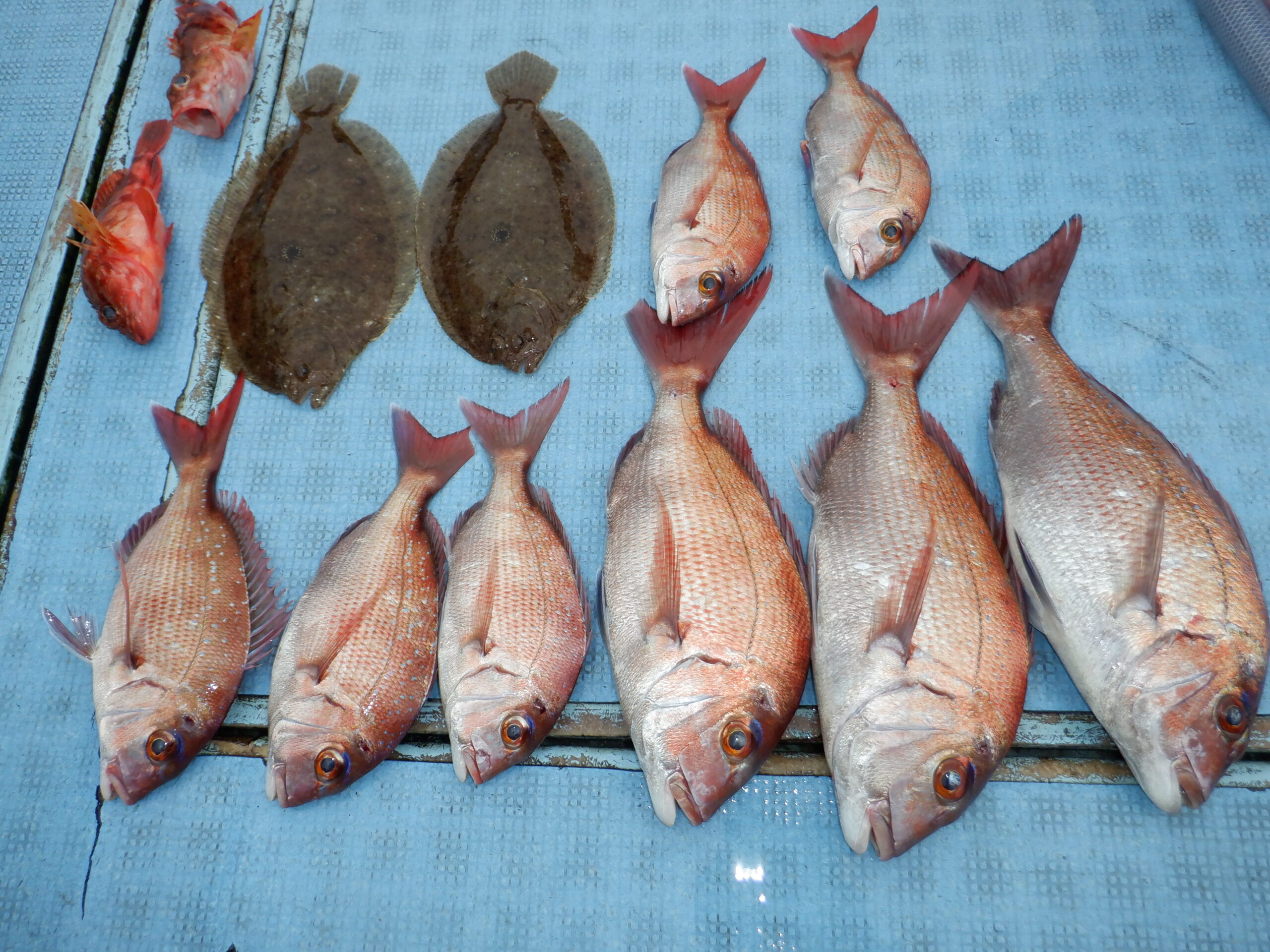 神谷さんら仕立での釣果~今日はお父さんのお誕生日で還暦になり娘さんが71cm・3.8kgの大鯛を釣りお祝いしてもらいましたね(*^-^*)おめでとうございます。吉田さんは乗合で60cmのオーバーを2匹GET☺28日の真鯛狙いの乗合まだまだまだ空いてま~す。
