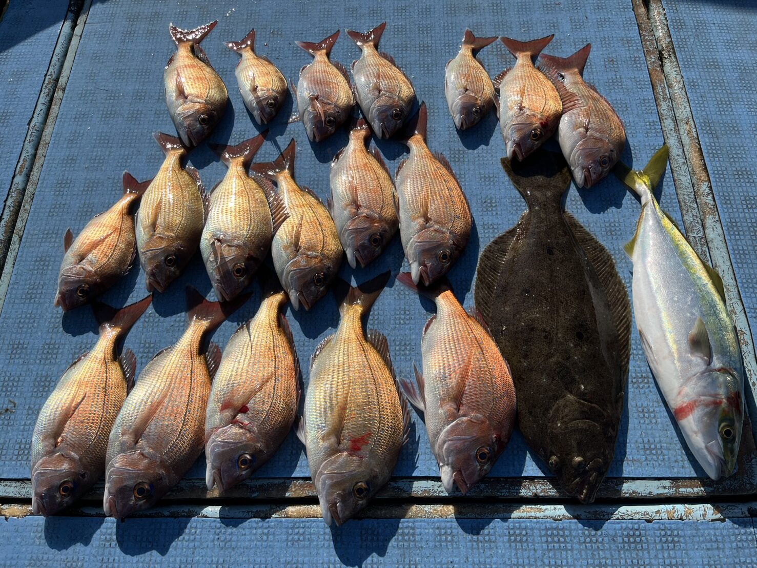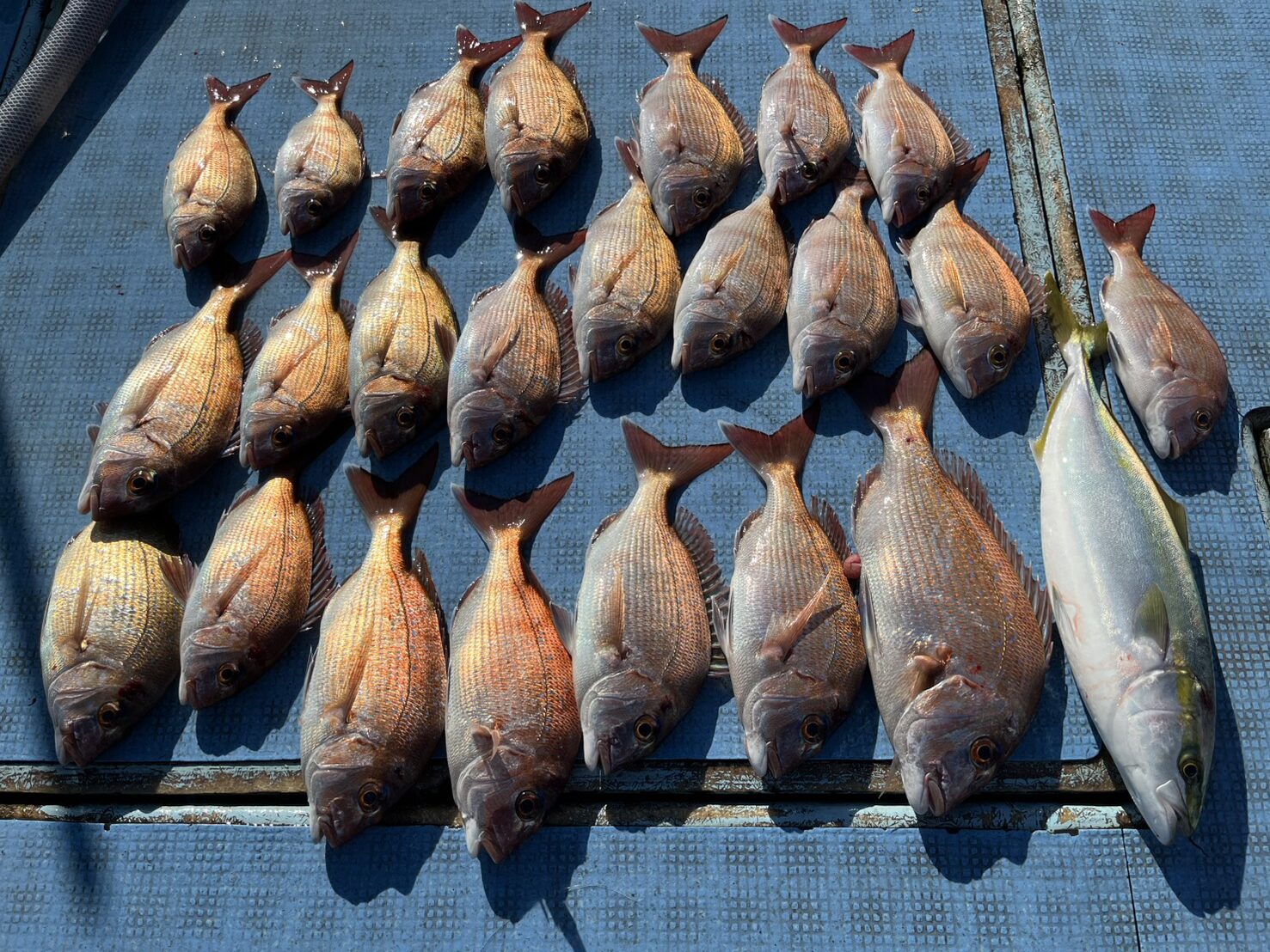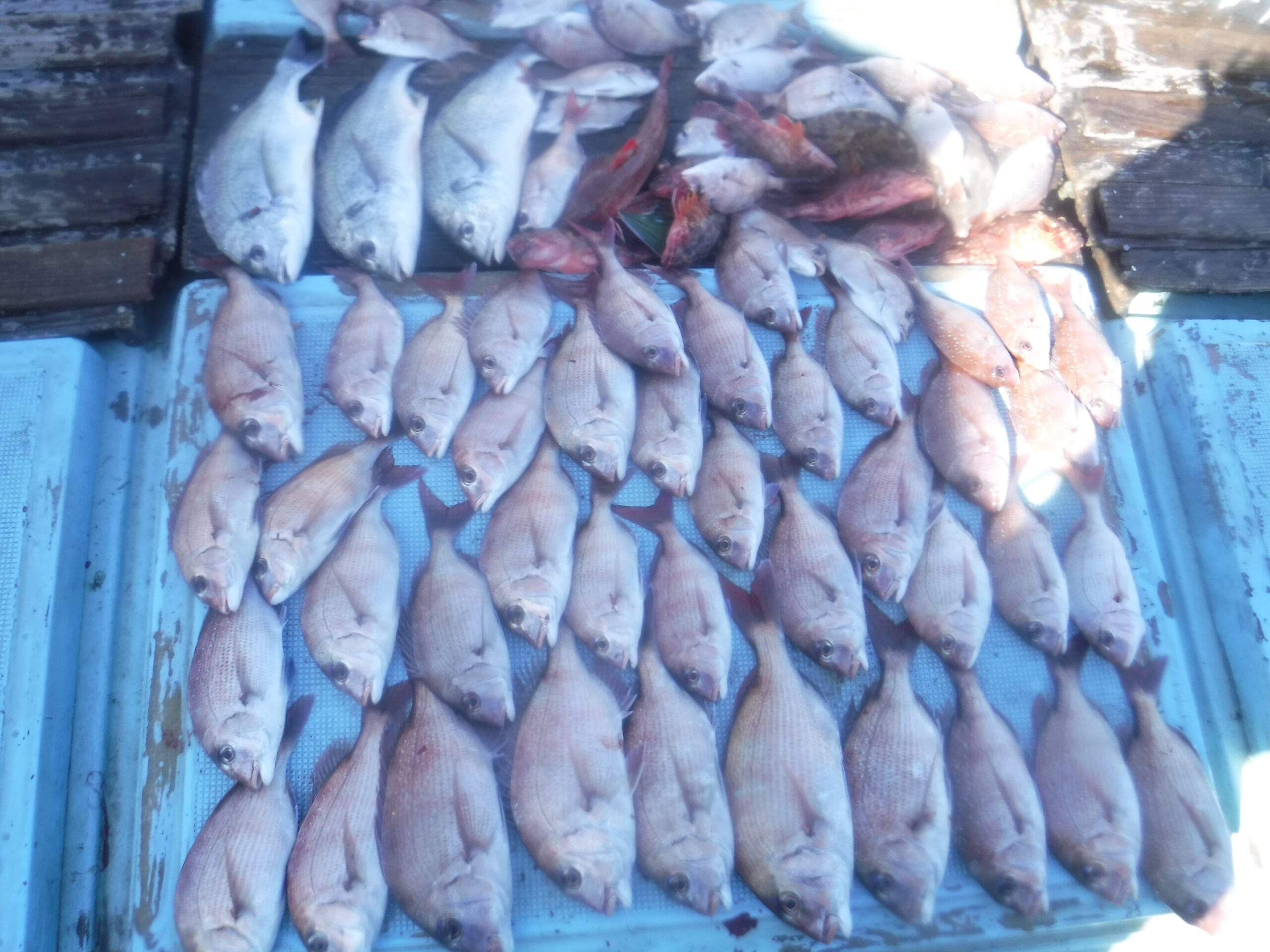 真鯛爆釣~(*^-^*)釣りガールの皆さんも船酔いが無く釣りましたね!(^^)!釣れたので1時間早上がりでした!!