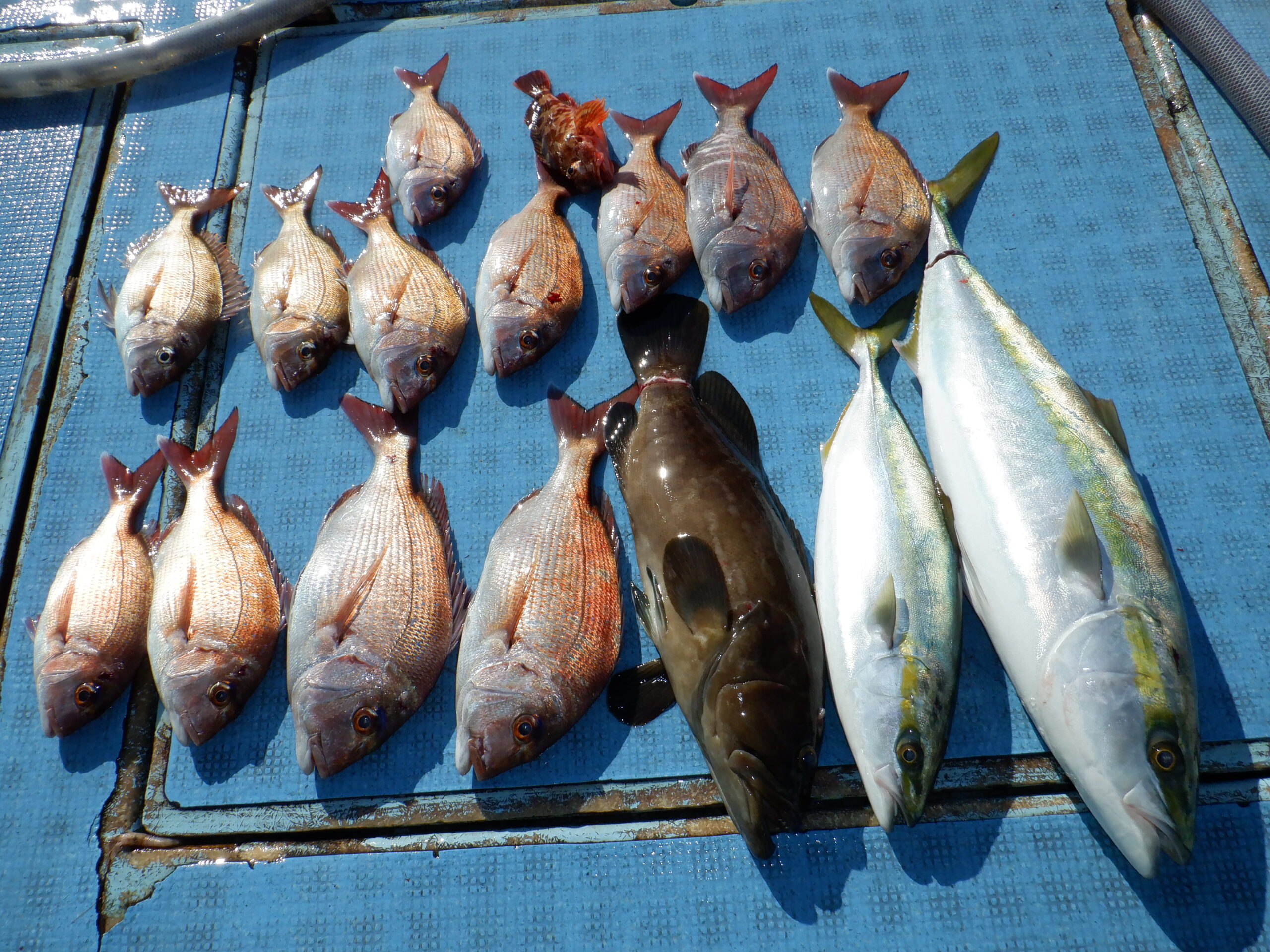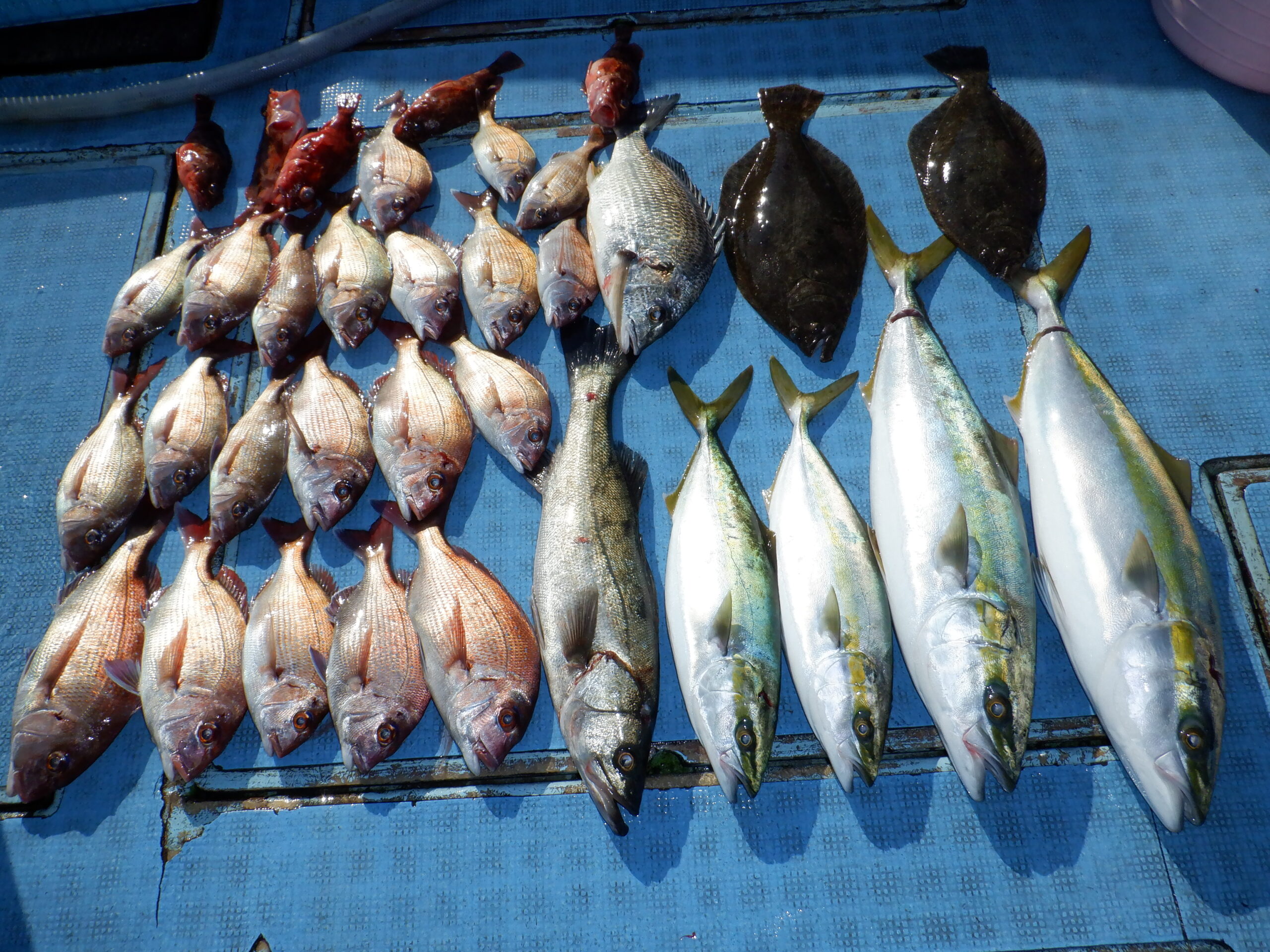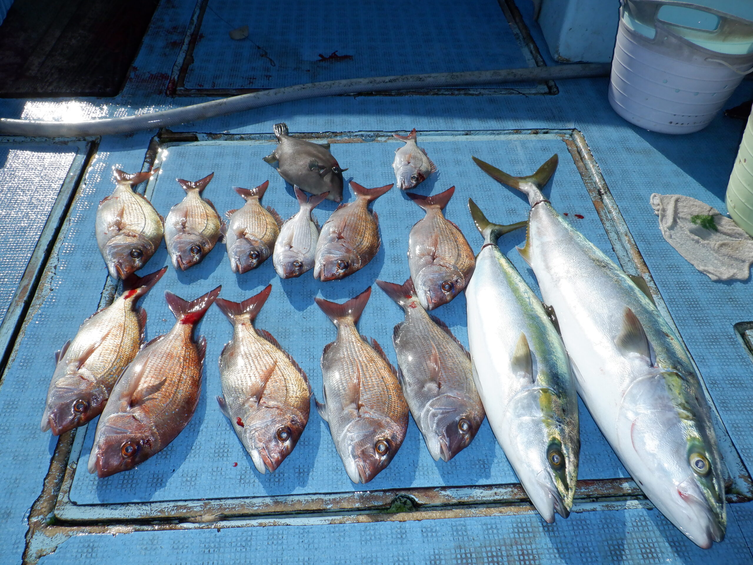 良型真鯛を頭に真鯛・ハマチ・クロダイなど色々釣れましたね~ヽ(^o^)丿
