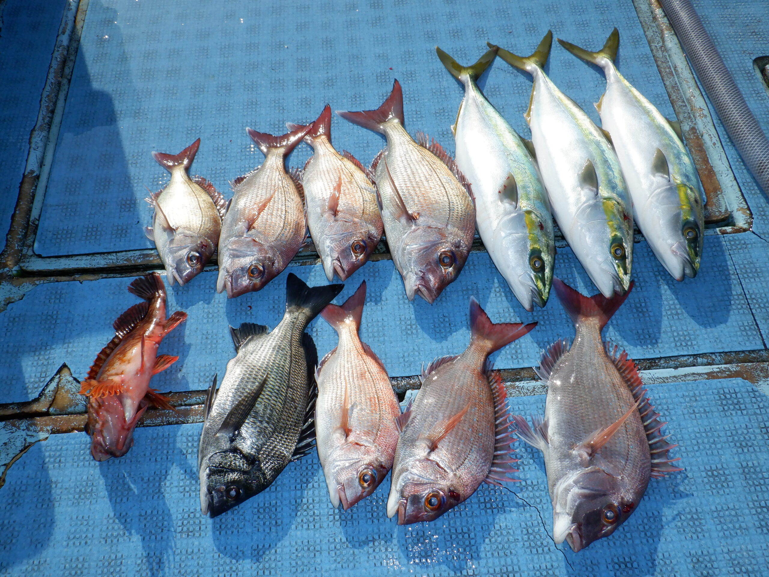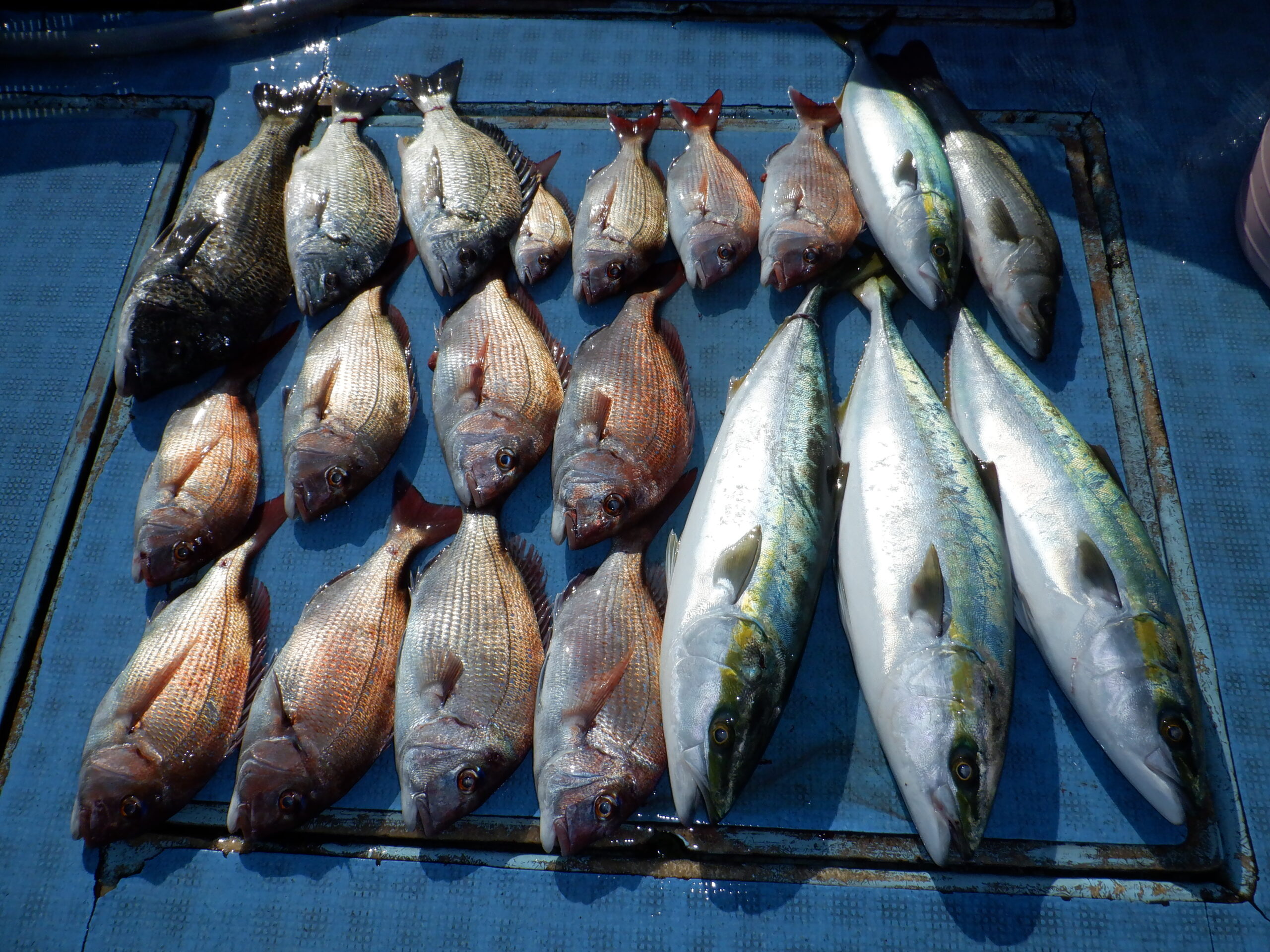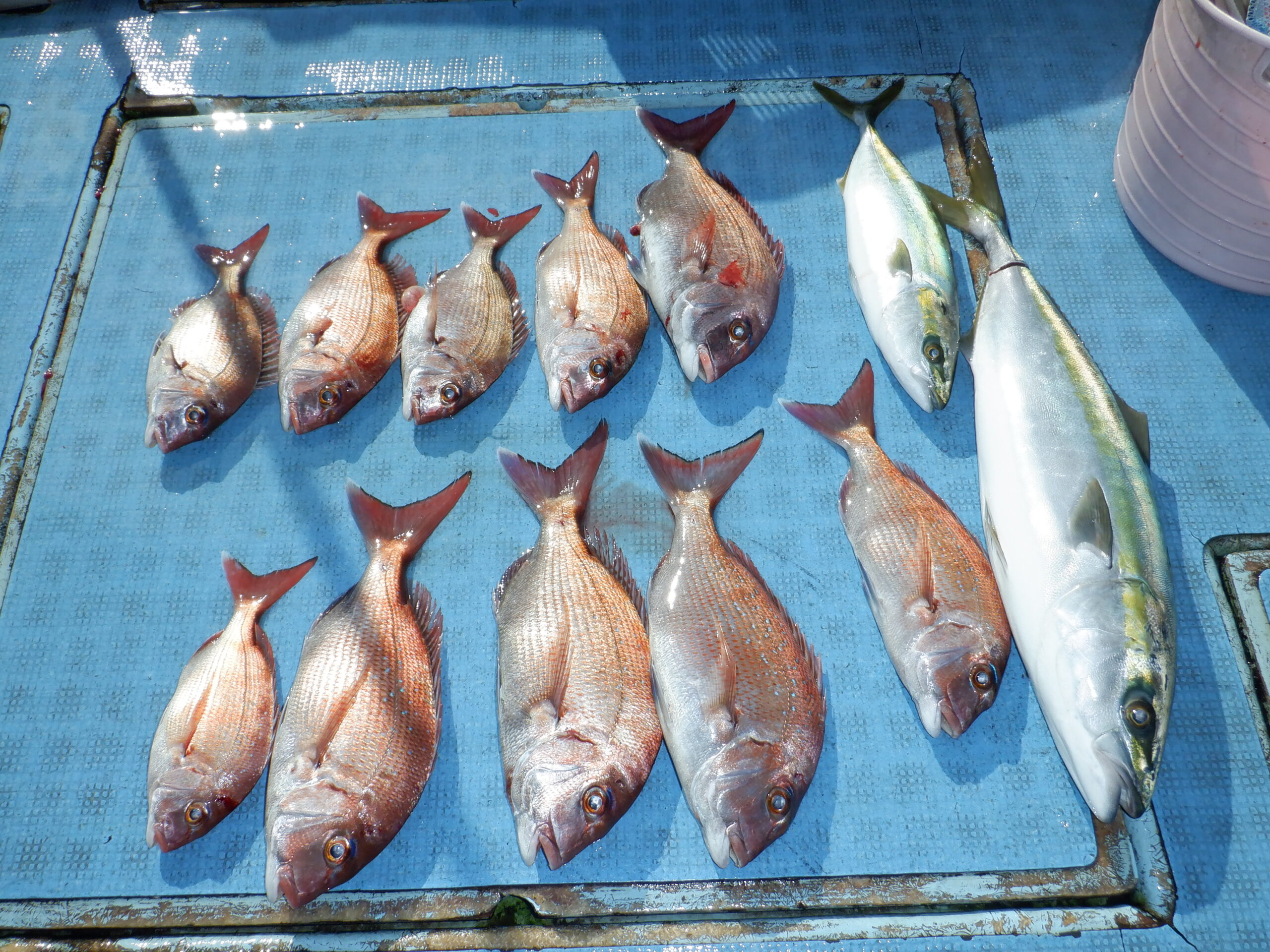 良型真鯛を頭に真鯛・ハマチ・クロダイなど色々釣れましたね~ヽ(^o^)丿