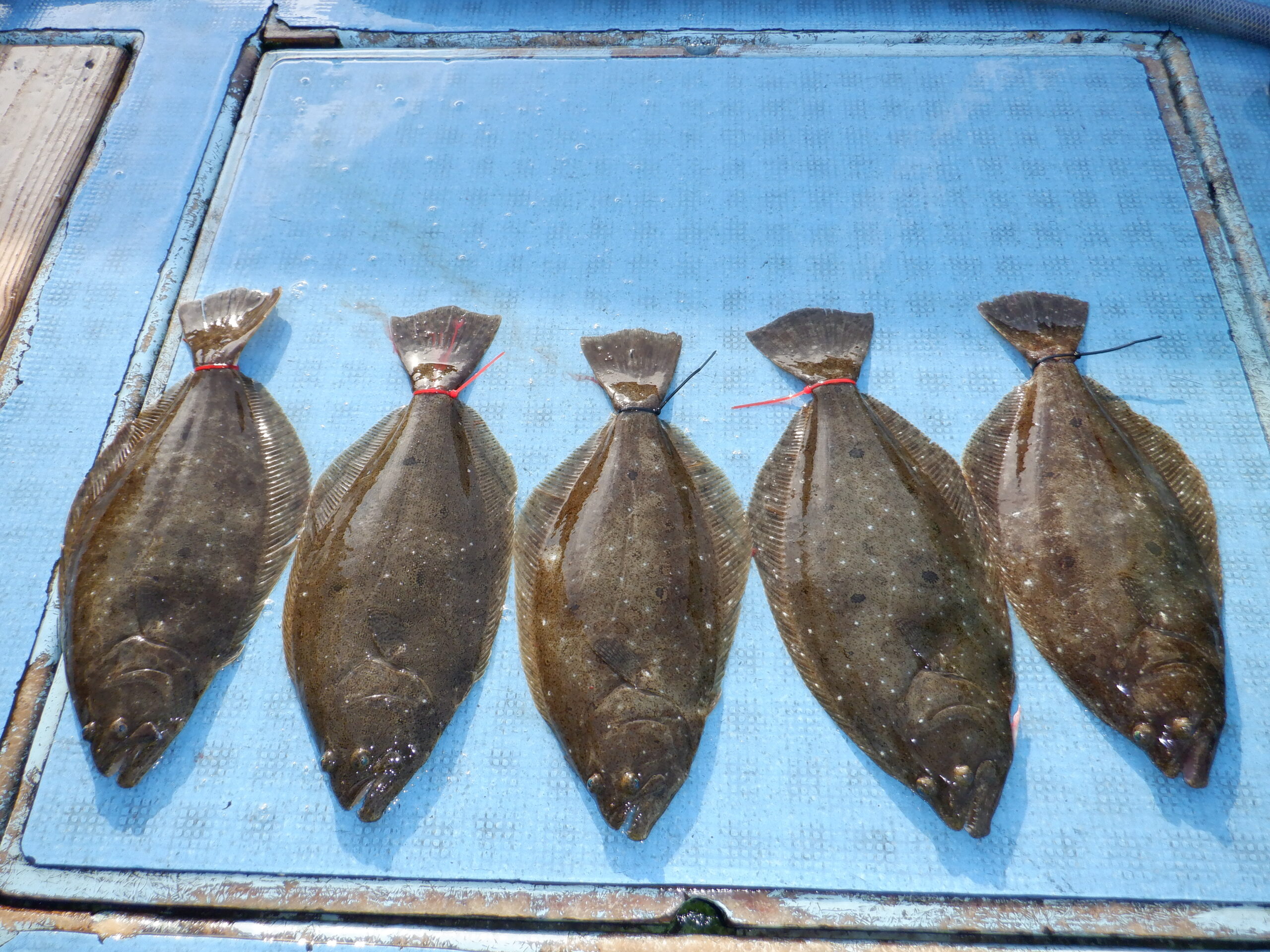 平松さんら皆さんの3匹つづの長さでの釣り大会でしたぁ~ヒラメ狙いの仕立船では良型...
